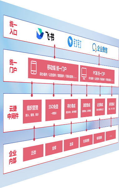 对协作平台提供支持服务,,,,支持企业应用与协作平台对接,,,包含组织同步、、、消息集成、、、待办集成等。。支持目前主流的协作平台:钉钉、、企微和飞书。。。。